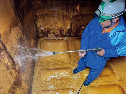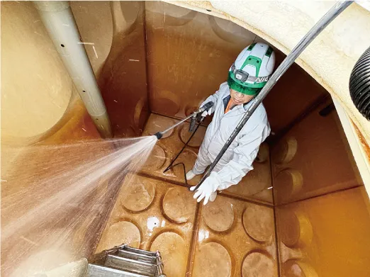 タンク内部の汚れや付着物はレジオネラ菌繁殖の原因となるため、定期的に高圧洗浄し、消毒を行います。